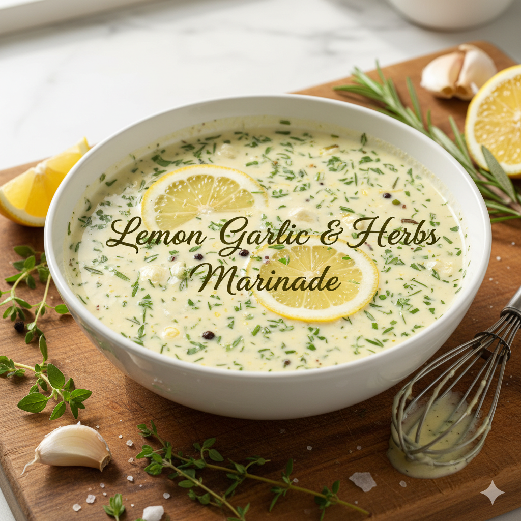 Lemon, garlic, and herbs form a timeless trio in cooking, celebrated across global cuisines. This marinade blends the zest of lemon with the pungency of garlic and the freshness of herbs, creating a bright, aromatic, and versatile flavor. More than a seasoning, it represents the balance of freshness and depth, often found in Mediterranean kitchens where food is wholesome, flavorful, and rooted in nature.