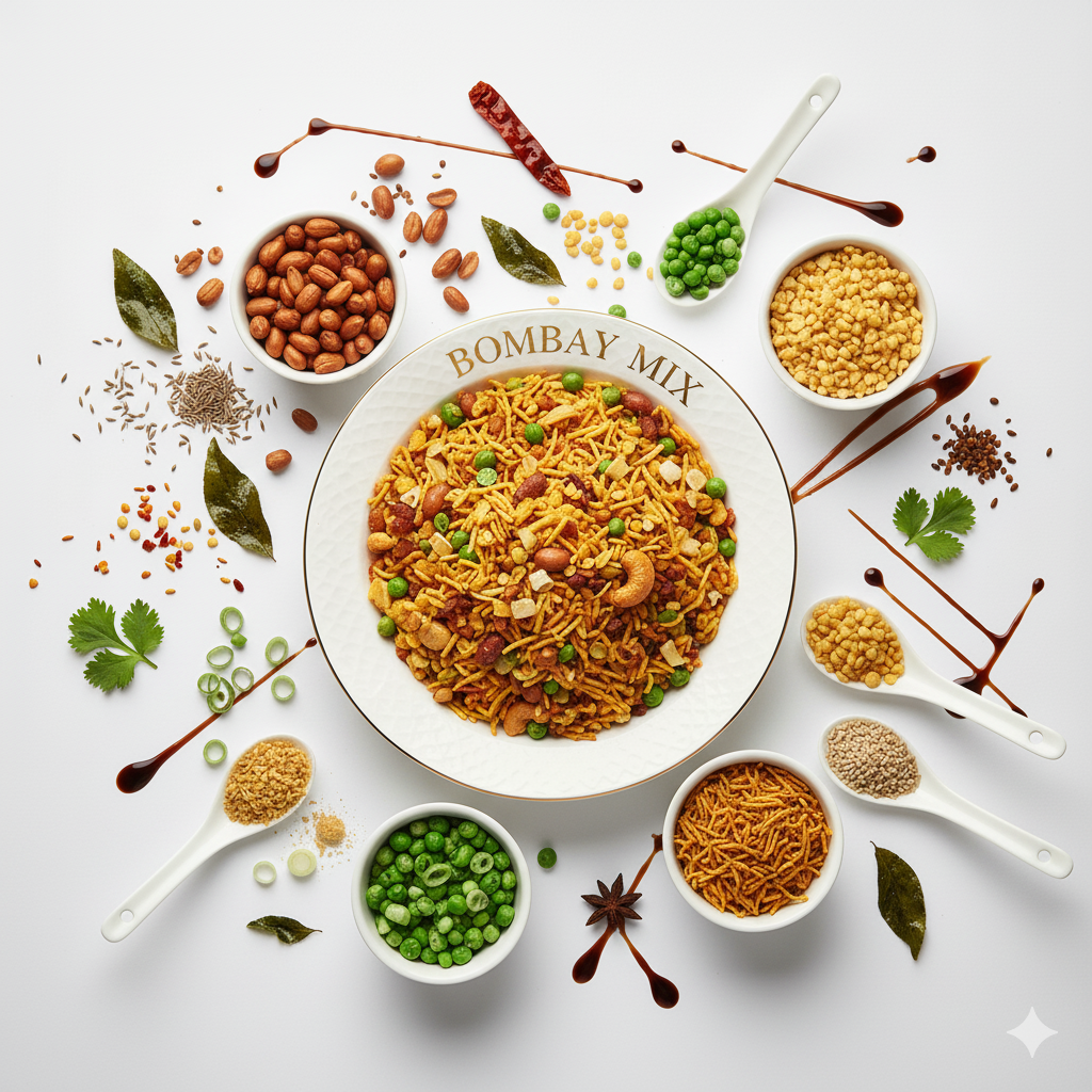 Bombay Mix, also known as Chivda, is not a seasoning blend but a ready-to-eat snack. It combines fried lentils, chickpea noodles, peanuts, and spices into a crunchy, savory treat. Its origins trace back to Indian street food, where vendors sold it as a flavorful and inexpensive snack. It has since gained popularity worldwide as a spicy, addictive munching mix.
