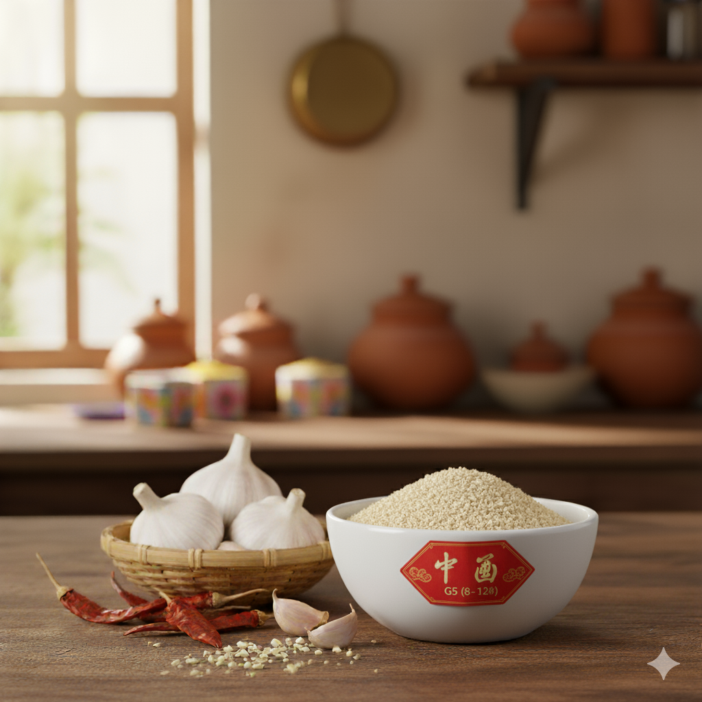Garlic Granules G5 (8–12#) from China are coarser, larger pieces of dehydrated garlic produced from premium garlic cloves. This grade retains the authentic garlic aroma and texture, offering a more visible and flavorful presence in food formulations.