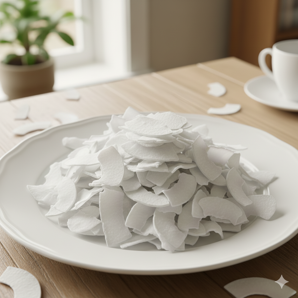 Untoasted coconut chips are thick-cut dried coconut slices without roasting. They retain a softer, natural white appearance and mild coconut flavor. Ideal for baking and cooking where additional toasting or caramelization may occur during preparation.
